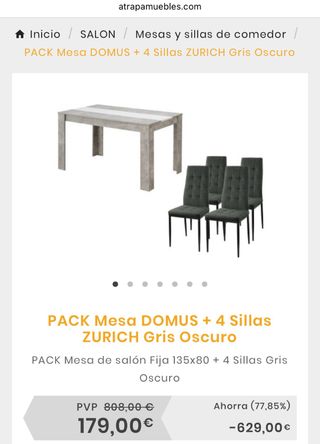 Pack Mesa Domus + 4 Sillas Zurich Gris a estrenar.