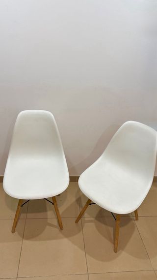 Sillas de comedor con un diseño elegante. - Tapicería en tela color beige. - Patas de madera en tono oscuro. 2 sillas con signos de uso. Fueron usadas con funda. La que está en mejor estado por 3€ La tiene algo colorado en el asiento por 2€ creo que fue por una funda negra que teníamos puesto Las 2 por 4€ Se vende por mudanza, echa un vistazo a mi perfil ya que iré subiendo más cosas.