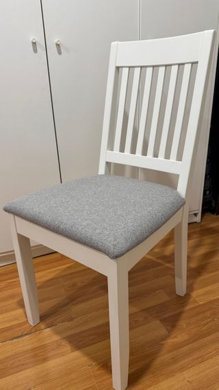 Conjunto de dos sillas de comedor de Ikea. se venden las dos juntas, están en buen estado, la funda original es blanca pero por encima le he puesto la roja que se ve en la foto que quedaba más vistoso, pero de regalo entrego las sillas con un par de fundas blancas originales y un par de fundas rojas adicionales a las que ya están puestas para que las puedas cambiar cuando laves las fundas. nueva cada una cuesta 79€ en las dos serían 158, yo las dejo en 20€las dos, no las vendo por separado, vendo el pack de dos, co las fundas adicionales de regalo, para recoger en Cornellà, no hago envíos