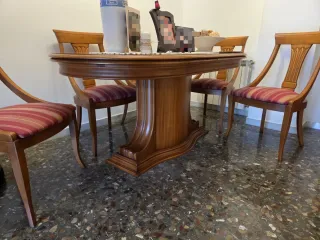 Mesa redonda y 4 sillas de madera