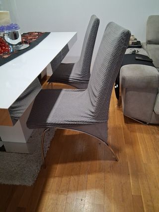 4 sillas de tela con patas cromadas. Y 4 fundas a juego