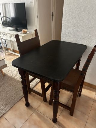 Mesa comedor madera y 2 sillas