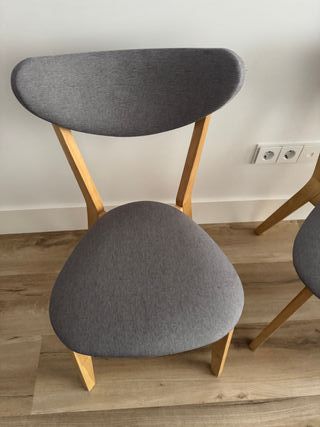 Pack 6 sillas de comedor de madera y asiento tapizado – como nuevas Vendo 6 sillas de comedor de estilo moderno, con estructura de madera maciza y asiento acolchado y tapizado en tela color claro. Son muy cómodas y encajan tanto en comedores actuales como en ambientes más cálidos y naturales. ✨ Prácticamente sin uso, están en excelente estado, sin manchas, roturas ni holguras. 🪑 Asiento amplio y cómodo, respaldo ergonómico. 🏠 Perfectas para comedor, cocina o incluso despacho. Se venden juntas. 📍 Entrega en mano en Gijón ❌ No hago envíos