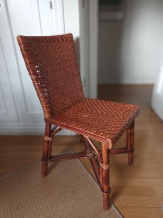 Conjunto de seis sillas de comedor de mimbre con un diseño elegante. - Material: Mimbre y ratán. - Color: Marrón.