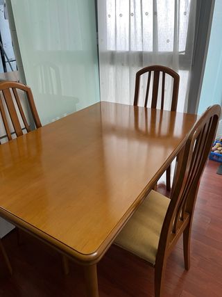 Mesa comedor y 4 sillas madera, abierta mide 240 c