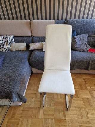 4 sillas de comedor blanco con tela sky blanco y patas de acero. En perfecto estado a un precio de 30€ cada una, en total 120€.