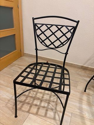 Conjunto de sillas de comedor con estructura de metal negro y asiento acolchado. - Diseño elegante con respaldo de reja. - Cojín de asiento en color crudo.