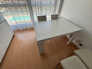 Mesa comedor extensible, de 135 a 195 cm. Con pocos daños de uso. Se regalan 6 sillas usadas.