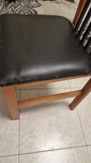 Conjunto de 6 sillas de comedor con un diseño elegante. - Estructura de madera resistente. - Asiento tapizado en tela suave. Se venden las 6 por 60€ o sueltas por 10€ cada una