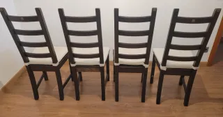 Preciosas 4 sillas de comedor o para jardin. Muy comodas. perfecta para darle un toque de estilo a tu hogar. Se encuentra en buen estado. Muy comodas. Nuevas costarón 98 € / unidad. poco uso. El precio es por las 4 Sillas - Diseño elegante y minimalista. - Asiento cómodo y acolchado. - Patas de madera resistentes.
