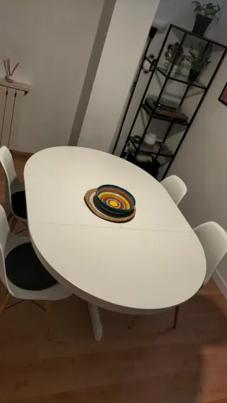Mesa comedor (6plazas) + 4 sillas blancas IKEA
