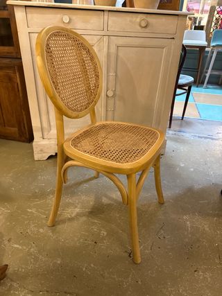 Silla de comedor de madera y ratán