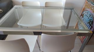 Mesa de comedor extensible y con cristal. 4 sillas incluidas. Pack no divisible. A recoger por el interesado en La Laguna.