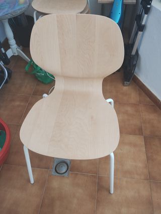 Se venden cuatro sillas de comedor IKEA SIGTRYGG. Son de color beige y blanco, con estructura de madera y asiento de plástico. Están en buen estado y son ideales para cualquier hogar. - Diseño elegante y moderno. - Cómodas y resistentes. - Fáciles de limpiar.