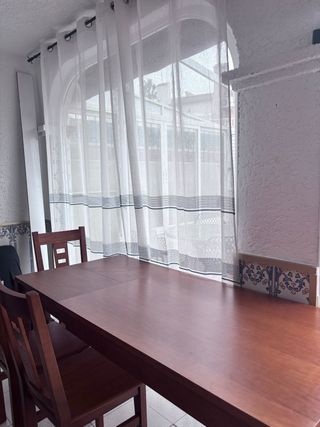Elegante mesa de comedor de estilo antiguo, de 145 cm X 80 cm, perfecta para dar un toque clásico a tu hogar. - Diseño ovalado con patas ornamentadas. - Acabado pulido que resalta la veta de la madera. - Extensible a ambos lados (30 cm cada extensión) Sillas de regalo (son de polipiel y llevan funda porque hay zonas desgastadas)