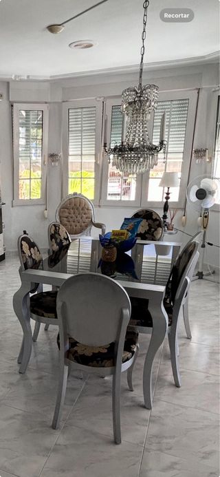 Conjunto de mesa de comedor con sillas. - Mesa con sobre de madera. - Sillas tapizadas en tela. - Hacemos envios y montajes - Completamente nuevo - Garantia de 3 años - Pago a contrareembolso Mas informacion: +34 663 672 154