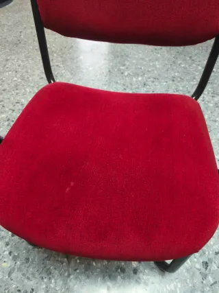 🪑 Sillas con reposabrazos – Muy cómodas (x2) Vendo 2 sillas iguales en muy buen estado. Tapizadas en color rojo, con estructura metálica resistente y reposabrazos negros. Son cómodas y estables, ideales para comedor, despacho, sala de espera u oficina. ✔️ Firmes y sin holguras ✔️ Tapizado en buen estado ✔️ Diseño moderno y funcional Se pueden vender juntas o por separado. Precio: • 25 € cada una • 45 € las dos juntas 📍 Recogida en mano