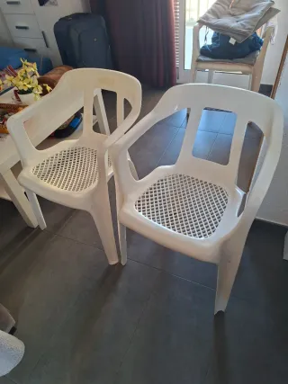 Conjunto de dos sillas de playa. - Diseño moderno y apilable. - Asiento y respaldo perforados para mayor comodidad. - Patas estables para diferentes superficies.