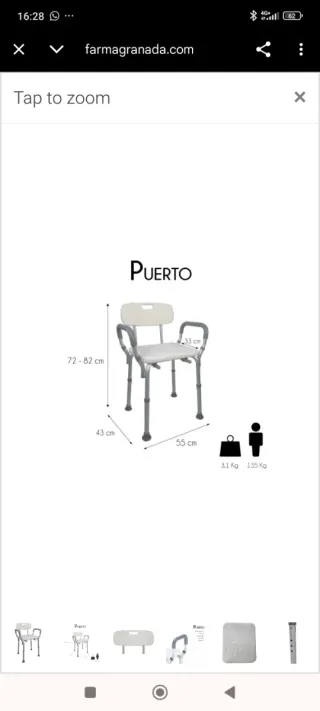 Silla de ducha diseñada para mayor comodidad y seguridad. - Patas ajustables en altura. - Brazos de apoyo. - Asiento con diseño ergonómico. La blanca 150€ y la gris 10€