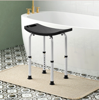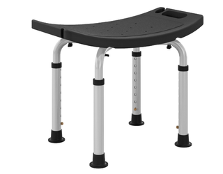 Taburete de ducha HOMCOM con asiento ergonómico y antideslizante. - Patas ajustables en altura. - Estructura robusta de metal y plástico. - Diseño curvo para mayor comodidad. MÁXIMA ESTABILIDAD Y SEGURIDAD: Las patas del taburete incluyen tapones de goma antideslizantes que evitan movimientos indeseados. Además, las asas laterales en el asiento permiten sujetarse con firmeza y moverlo fácilmente - MEDIDAS TOTALES: 50x36x39,5-56,5 cm. Carga máxima: 135 kg. Esta silla de ducha para personas mayores fácil de montar y transportar. Referencia 713-165V00BK