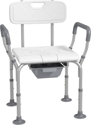 Silla De Ducha 3 en 1 Con Respaldo Y Apoyabrazos, Silla Cómoda Y Silla WC Con Altura Regulable Y Patas Antideslizantes, Blanco