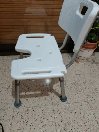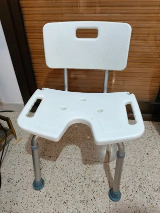 Vendo silla/banco de ducha con respaldo en muy buen estado. Estructura metálica (ligera y estable) y asiento de plástico texturizado con agujeros de drenaje para que no se encharque. Características: • Altura regulable (patas con posiciones) • Tacos antideslizantes de goma • Asiento con asas laterales para facilitar incorporarse • Respaldo con asa para moverla • Fácil de limpiar Ideal para personas mayores, postoperatorios, movilidad reducida o para más seguridad en la ducha. Se puede ver sin compromiso