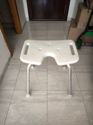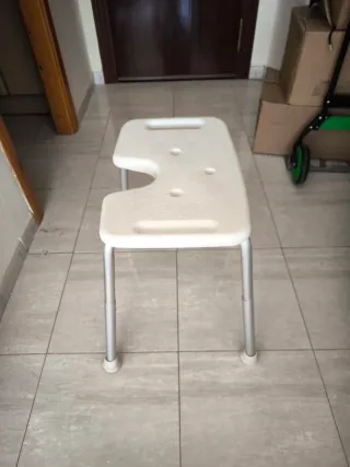 Taburete de plástico desmontable... ideal para personas dependientes para la ducha. le falta la goma de una pata No atiendo los domingos.