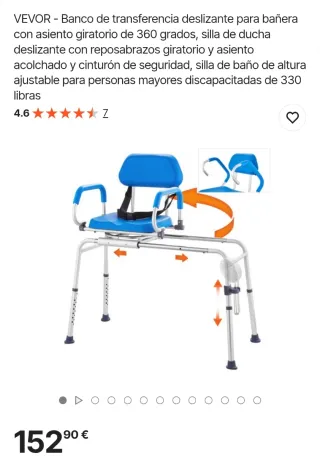 silla de ducha para personas con necesidades esta en buenas condiciones, se pone una parte dentro de la bañera y otra queda fuera para poder acceder bien si tiene alguna lesión en las piernas