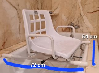 Silla diseñada para facilitar el uso en la ducha, con altura regulable. - Asiento y respaldo con textura antideslizante. - Reposabrazos para mayor comodidad y seguridad. - Patas ajustables en altura. se encuentra en perfecto estado, se usó muy pocas veces. Está armada.
