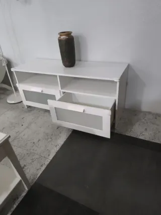Mueble bajo de diseño moderno en color blanco, ideal para tu salón o comedor. - Dos compartimentos abiertos. - Dos cajones con frentes translúcidos y tiradores integrados. - Acabado liso y fácil de limpiar. Somos tienda fisica Estamos en calle la unión 9 Alcobendas Madrid Horario: 10:00- 13:30 17:00-19:30 Teléfono de contacto: 916613807 Muebles de segunda mano en buen estado Oportunidades para su hogar Buenos precios Armarios, somier, cama, cómoda, antiguo, vintage, cuadros, decoración, salón, mesita, silla, cajonera, sinfonier, entradita, moderno, Espejo, estanteria, niños, escritorio, lampara, cestas, accesorios.