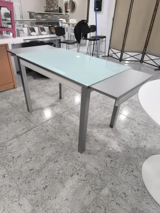 Mesa moderna con superficie de cristal y estructura metálica. - Diseño elegante y minimalista. - Patas robustas de metal. - Tablero de cristal transparente. Somos tienda fisica Estamos en calle la unión 9 Alcobendas Madrid Horario: 10:00- 13:30 17:00-19:30 Teléfono de contacto: 916613807 Muebles de segunda mano en buen estado Oportunidades para su hogar Buenos precios Armarios, somier, cama, cómoda, antiguo, vintage, cuadros, decoración, salón, mesita, silla, cajonera, sinfonier, entradita, moderno, Espejo, estanteria, niños, escritorio, lampara, cestas, accesorios. Colabora con una obra social.
