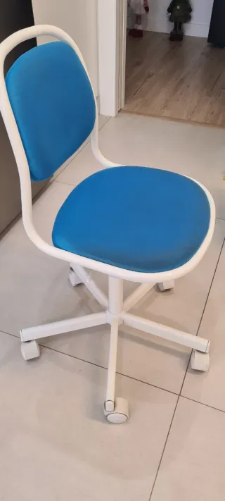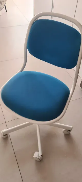 Silla cómoda y elegante, ideal para tu espacio de trabajo o estudio. - Diseño ergonómico. - Reposabrazos acolchados. - Base giratoria. Sin ningun desperfecto la compre hace un mes por 100 en ikea pero necesito algo mas pequeño tipo taburete
