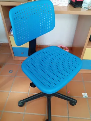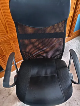 Silla de escritorio con un diseño moderno y funcional. Su estructura está pensada para ofrecer comodidad. - Revestimiento de tela transpirable. - Base y ruedas de plástico resistente. Está en perfecto estado, tiene 3 años como mucho de uso. Solo habría que limpiarla un poco, que me encargaría yo antes de enviarla.