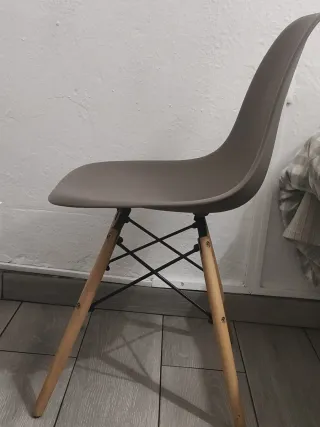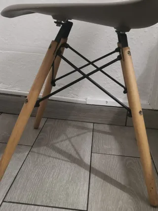 Silla de escritorio con un diseño moderno y patas de madera. - Patas de madera. - Base metálica. - Asiento de plástico. - Se hacen envíos