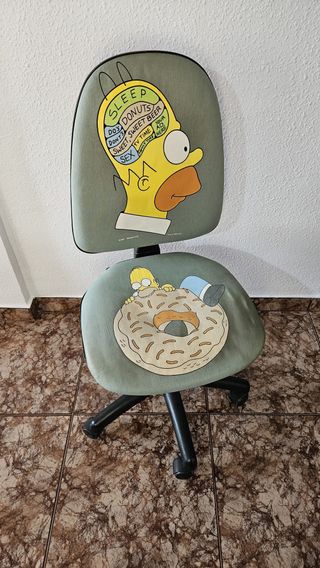 Se vende silla de escritorio de Los Simpsons. El tapizado del asiento tiene una mancha, por lo demás está en perfecto estado. Altura ajustable.