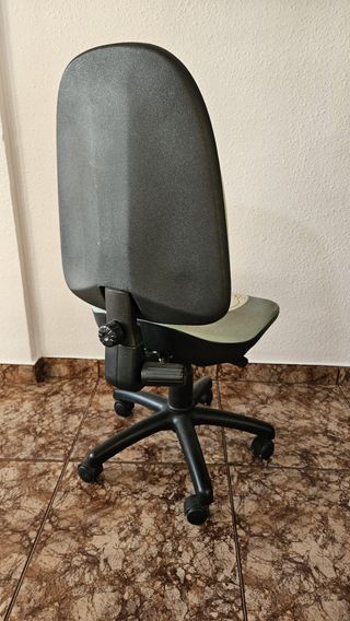 Silla de escritorio . Con ruedas , giratoria, bascula el asiento y el respado. Regulable en altura, pero no tiene gas ( necesitaria una recarga) . recoger en Sevilla