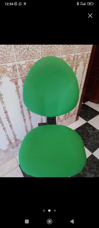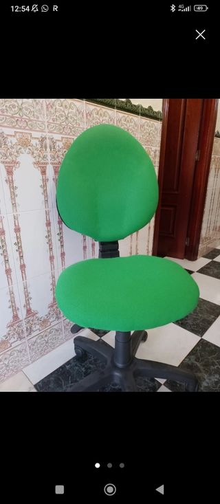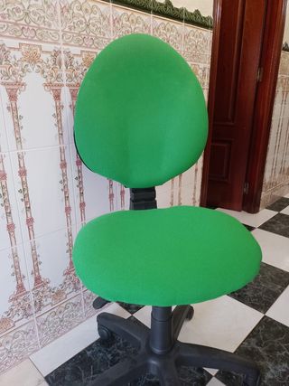 Silla color pistacho, patas metálicas brazos negros, respaldo y altura regulables. Negociable