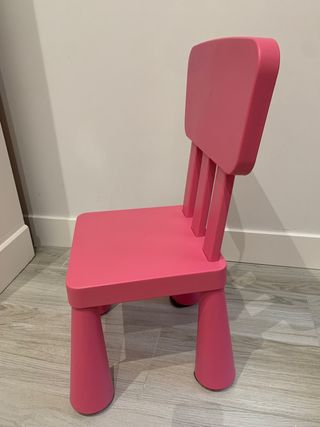 Silla de plástico de color rosa, ideal para niños. - Diseño moderno y funcional. - Material resistente y fácil de limpiar.