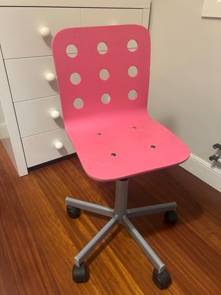 Silla Ikea de escritorio infantil/juvenil, con ruedas giratorias y altura adaptable, color rosa fucsia.