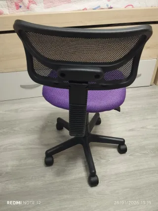 Silla escritorio color morada. - Material: Plástico resistente. - Está nueva - Sin uso, se montó y se dejó guardada.