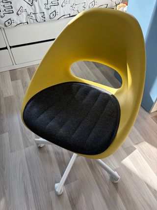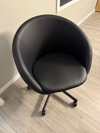 La vendo por falta de uso, la compre hace poco y apenas la he usado. Podeis ver que esta a la venta en Ikea por el doble de precio. 📍recogida de la silla en Getafe Norte - Asiento y respaldo tapizados en piel sintética. - Base de metal con ruedas para fácil movilidad. - Reposabrazos acolchados.