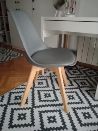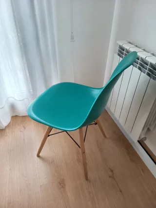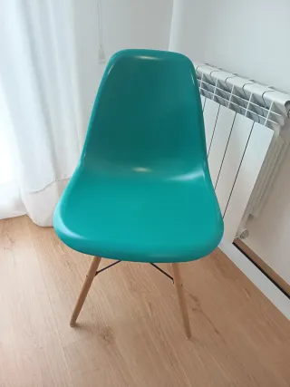 Vendo pack de 4 sillas Eames en buen estado general. Usadas, pero muy cuidadas y completamente funcionales. Diseño nórdico y moderno, ideal para comedor, cocina, salón o escritorio. Asiento ergonómico de plástico resistente y patas de madera con refuerzo metálico. Perfectas para quienes buscan decoración minimalista sin gastar de mas Solo venta en persona, no se hacen envíos Precio por el pack de 4 Precio unitario para venta sueltas 20€/ud