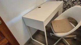 Se vende escritorio blanco con silla, urge por mudanza. Precio x ambas cosas - Diseño moderno y funcional. - Cajón integrado para almacenamiento.