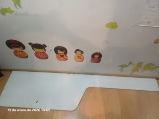 Regalo escritorio de 2.40m de largo , silla de oficina de ruedas, trampon para colgar en pared con puerta y estantería a juego. Recoger getafe los molinos