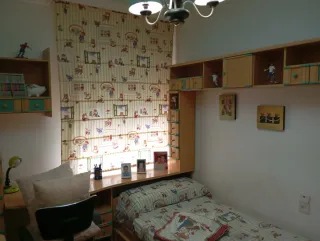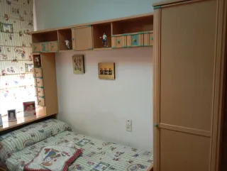 Conjunto de muebles para habitación infantil, ideal para crear un espacio funcional y divertido. - Dos camas,nido con sus respectvos somieres, cabezeras y colchones,con ropa de cama temática. - Escritorio con lámpara y silla. - Estanterías y armarios de pared. -Stor a juego con el edredon y tres cojines.