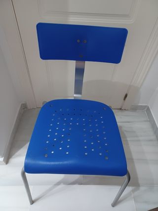 silla azul 4 patas metalica para escritorio infantil o juvenil.