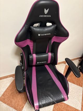 Silla gaming oversteel, Sillón Gamer Profesional Videojuegos,Ordenador, Oficina, Escritorio. Reposabrazos. Cojín Lumbar y Reposacabezas. Giratoria, Regulable en Altura y reclinable. Sus brazos son regulables y giratorios.