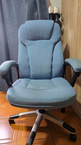 Cómoda silla de oficina, perfecta para largas jornadas de trabajo. Está completamente nueva. Se compró para amueblar una habitación y nunca se ha usado. Se puede ver y probar. Se envía también desmontada. Es reclinable y regulable en altura. - Diseño ergonómico para mayor comodidad. - Tapizado de tela suave al tacto. - Respaldo alto para soporte lumbar.
