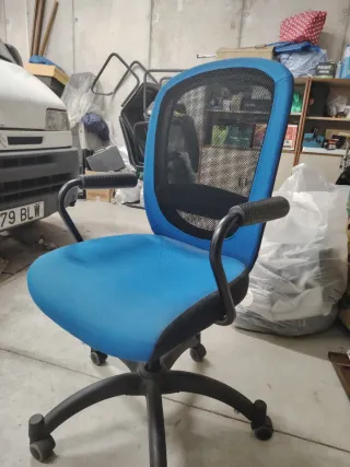 silla Escritorio , con regulación de altura, la polipiel del respaldo está gastada, tengo 4 de este modelo, el precio de 1 es de 8€ , es negociable según cantidad, el material está en Sabadell.