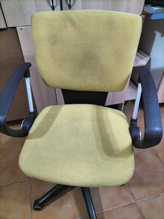 Silla en buen estado, para mesa de escritorio. Giratoria y con ruedas. El amortiguador de subida y bajada no va, está fija a una altura, por lo demás perfecta